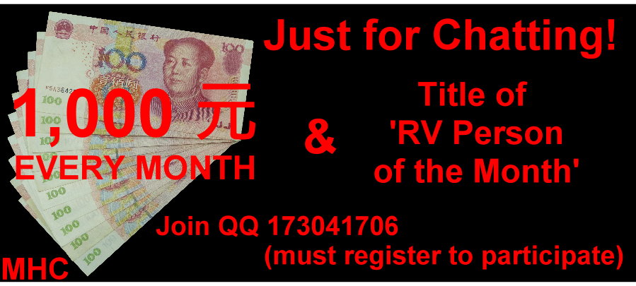 Earn RMB 1,000 every month just by being an outstanding moderator with great leadership able to keep a group going with interesting RV topics.