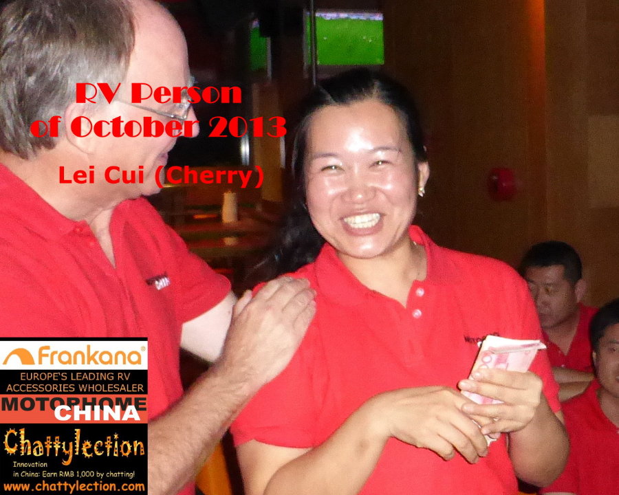 - After 12 month, a final winner will be elected from the previous winners and will be awarded RMB 3.000 and will get the title 'RV Person of the year'