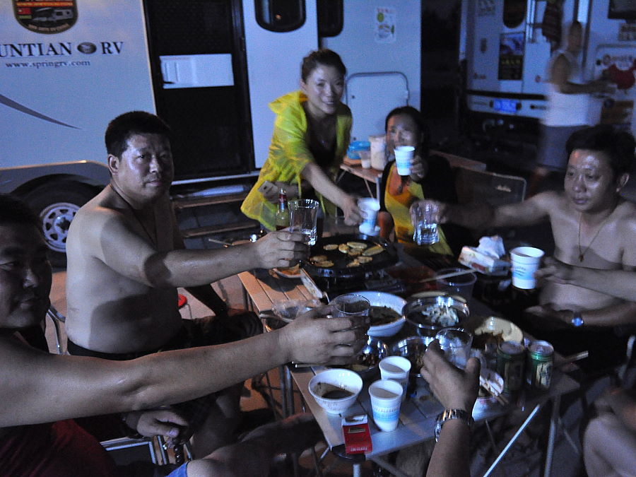 Bonnie There are about 50 motorhomes and trailers as well as 100 members departing from Beijing